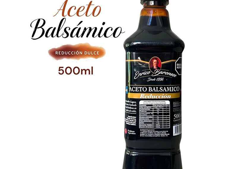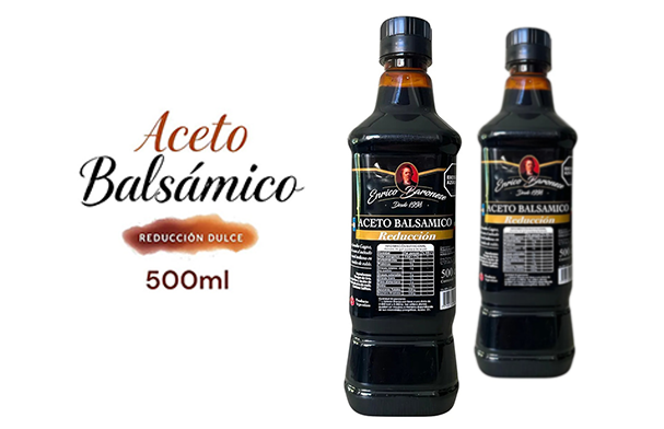 Descubre el Aceto Balsámico Reducción de 500cc de Enrico Baronese, una elección ideal para quienes buscan realzar el sabor de sus platos. Este aceto, con su textura densa y sabor concentrado, es perfecto para aderezar ensaladas, marinar carnes o dar un toque especial a tus postres.